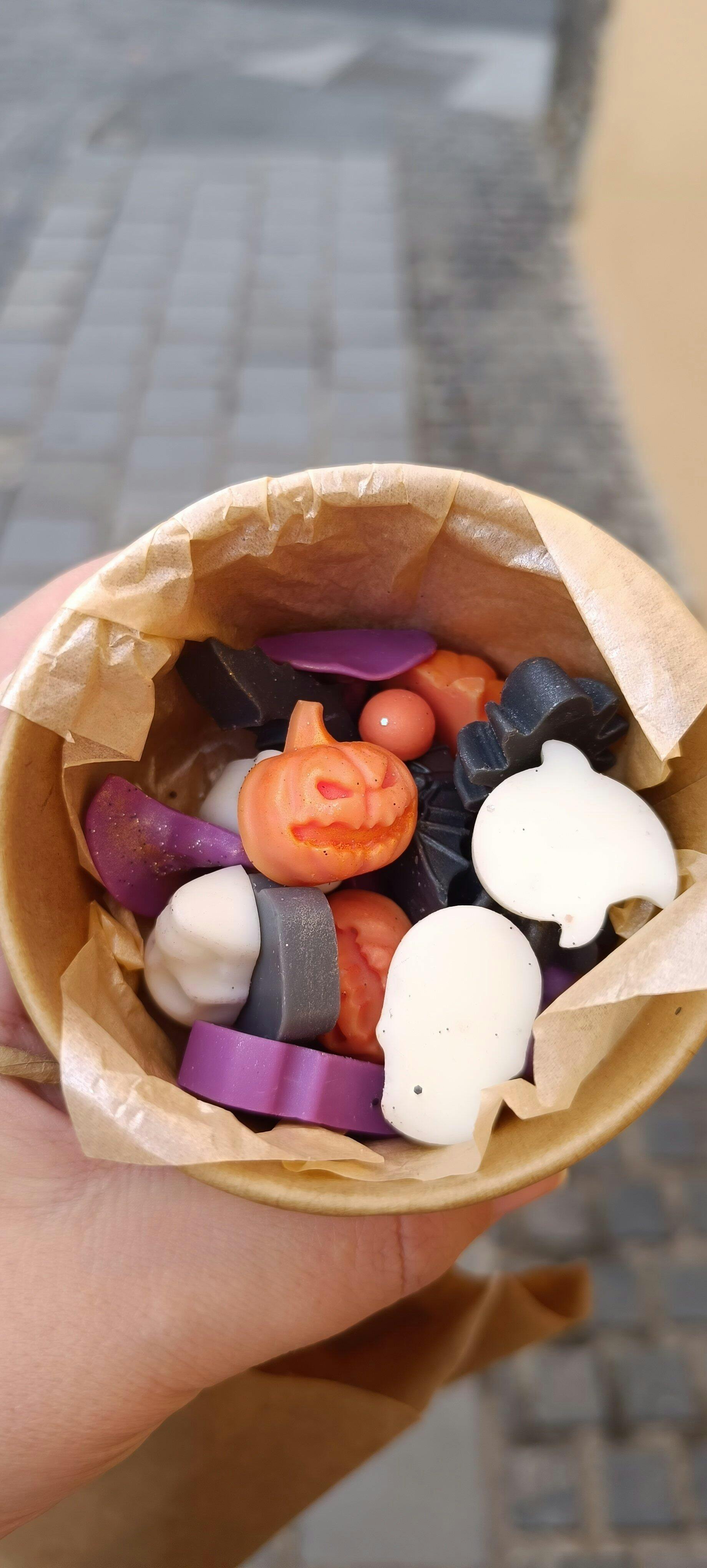 Los melts de Halloween de Paola huelen increíble, de verdad. En cuanto los abres, el aroma a pumpkin pie lo llena todo: dulce, especiado y con ese toque cálido que te hace pensar en otoño, mantas y pelis de miedo. Además, son preciosos, con unos detalles y colores que dan pena derretirlos de lo bonitos que son.